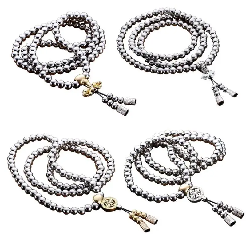 Stainless Steel Camping Necklace EDC Outdoor Buddha Beads Bracelet Car Hangings Self-defense Protec